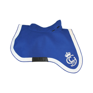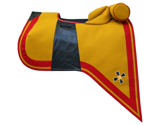 Vollschabracke mit halbem Sattelüberzug in weit ausladender Form, mit Mantelsack.